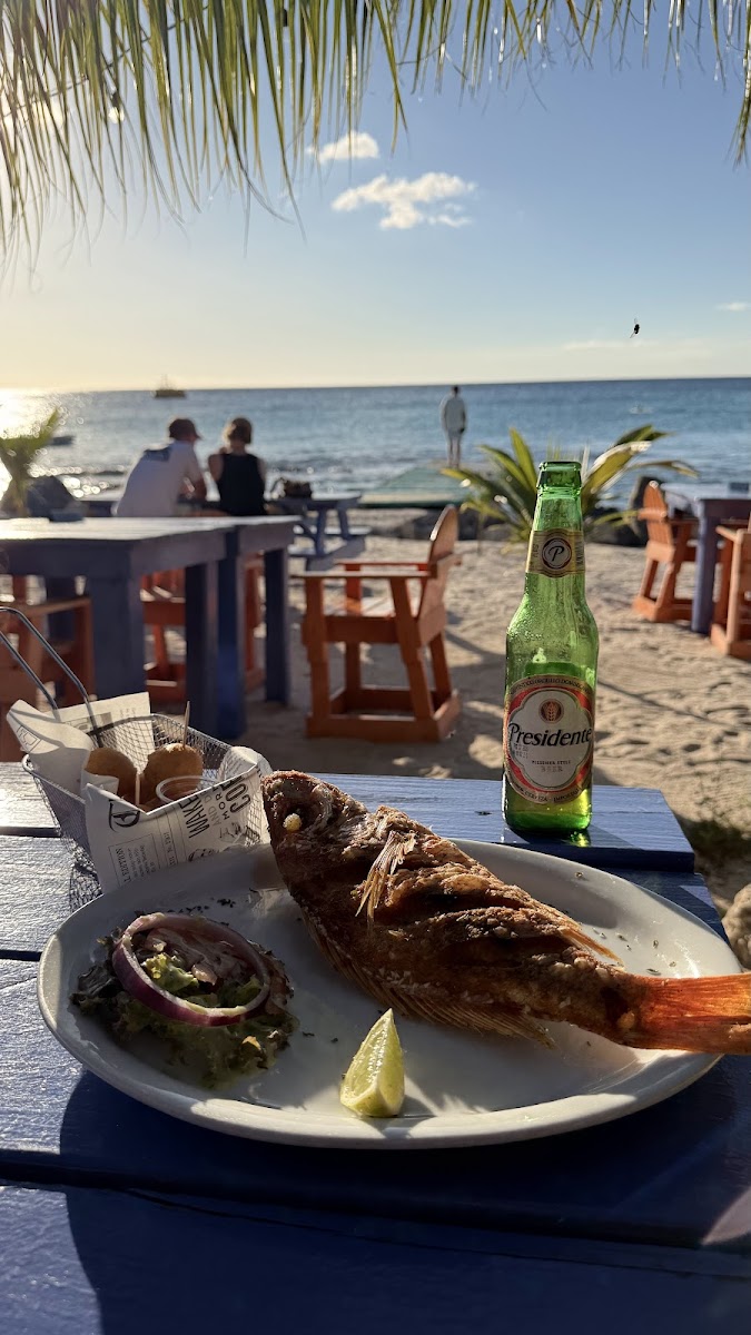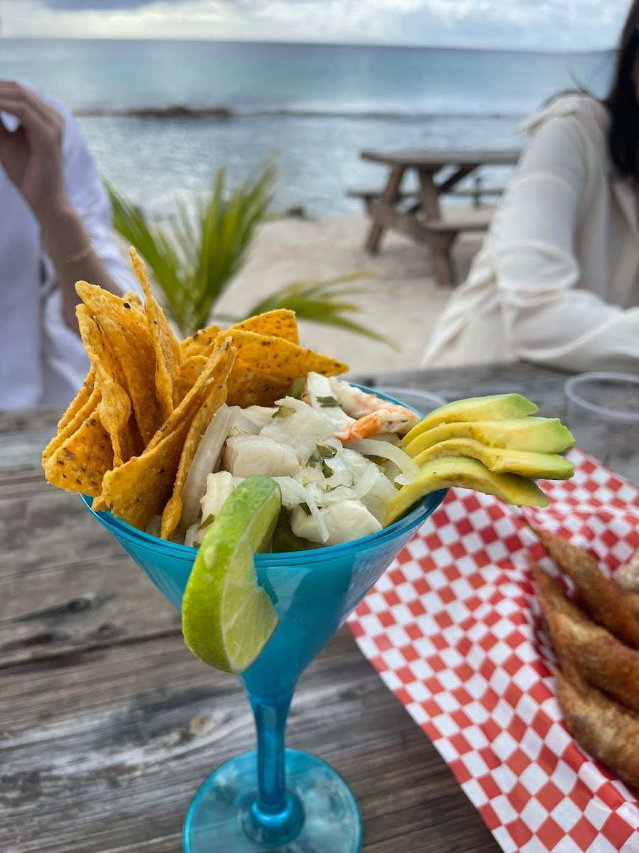 Wanted to try this place for a long time, so for our anniversary made a reservation. (Please do, it's quite busy). The location is amazing, on the beach, watching the sunset. We tried the fish platter and the salchipapas. Fish was quite good, but was too small to be called a platter. Salchipapas were really good, a bit too much sauce. The drinks were amazing even though the regular bartender was not in that day, the manager knows how to mix. All in all a great experience.